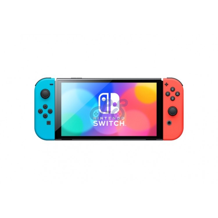 nintendo switch oled with neon blue and neon red joycon pro controller grey