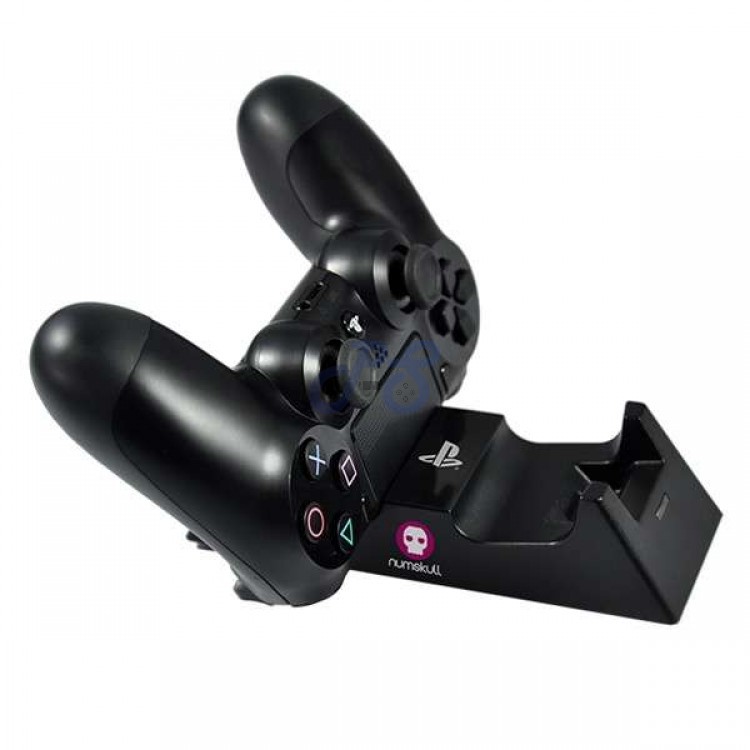 با پایه مخصوص نگهداری بازیهای پلی استیشن 4 میتوانید تا ۱۰ عدد دیسک بلوری را با قاب، با نظم و زیبایی در یک جا قرار دهید. همچنین این پایه دارای یک شارژر دوگانه برای شارژ دوال شاک ۴ است که روی پایه قرار میگیرد. این پایه شارژر با پورت میکرو USB، دوال شاک 4 را شارژ میکند و دارای آداپتور مخصوص برای اتصال مستقیم به منبع برق است. همچنین دو عدد نشانگر LED روی این پایه شارژر تعبیه شده است که مقدار شارژ هر کنترلر را نمایش میدهد.این محصول که توسط کمپانی Numskull ساخته شده، دارای لایسنس رسمی کمپانی سونی و برند پلی استیشن 4 است.
