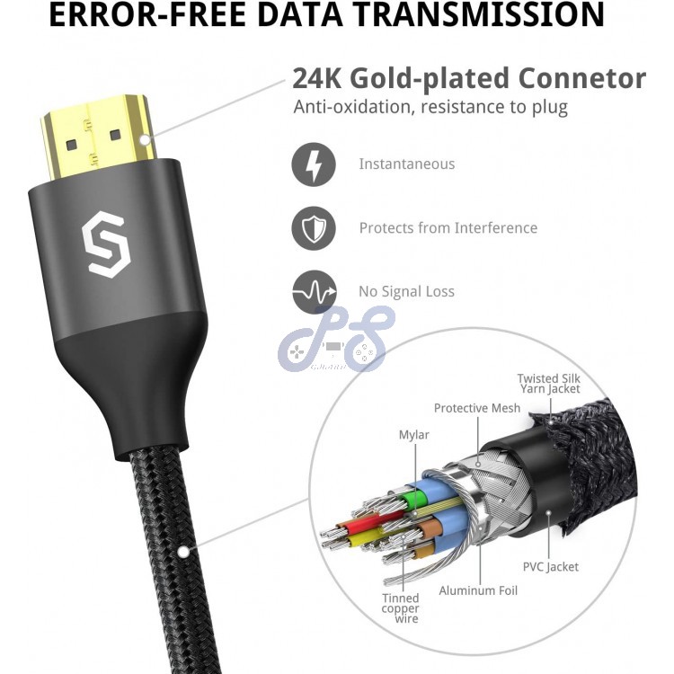 کابل HDMI 2.0 به طول سه متر این امکان را به شما میدهد که تصاویر با کیفیت 4K و فریم ریت 60 را به راحتی به نمایشگر خود انتقال دهید. این کابل از برند Syncwire با انواع مختلف مانیتور، تلویزیون، کامپیوتر و کنسولهای بازی مانند پلی استیشن 4، ایکس باکس وان، پلی استیشن 3 و نینتندو سوییچ سازگار است.