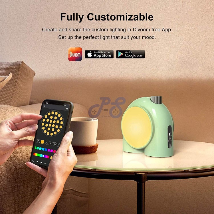 لامپ Divoom Planet 9، یک لامپ LED با پشتیبانی از ۱۶.۸ میلیون رنگ است که میتواند جلوه نورانی زیبایی به محیط شما بدهد.میتوانید با رنگهای ملایم، محیط آرامشبخشی را ایجاد کنید یا با نورپردازی سریع، فضای بازیهای اکشن را برای خود فراگیر کنید.این لامپ دارای پنج حالت نورپردازی برای حالات و شرایط مختلف است تا فضای مورد نظر خود را به دست آورید. شما با استفاده از اپلیکیشن Divoom میتوانید نوع نورپردازی و رنگهای این لامپ را تغییر دهید. این لامپ دارای باتری قابل شارژاست و میتوانید آن را همه جا با خود به همراه داشته باشید.با استفاده از اپلیکیشن Divoom شما حتی میتوانید زمانی برای خاموش و روشن شدن این لامپ تعیین کنید تا در زمان مورد نظر شما روشن شود و جلوه اتاق شما را تغییر دهد.