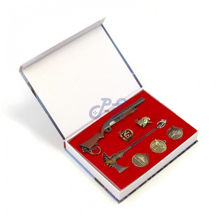 پک لوازم تزئینی با تم بازی Fortnite شامل دو عدد جاکلیدی با طرح شات گان و تبر، دو عدد حلقه با طرح بازی و سه عدد آویز با بند و طرح بازی فورتنایت و استودیو People Can Fly است.